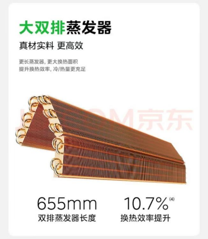 大双排蒸发器同样基于高密度铜管结构实现换热效率提升 10.7%。