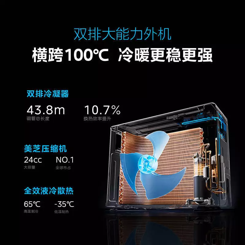 2️⃣双排纯铜管设计:与传统单排铜管相比,双排纯铜管大大增加了热交换面积,制冷效率提升30%以上。即使在40℃的高温天气下,也能保持稳定强劲的制冷效果,不会出现"越热越不制冷"的尴尬情况。