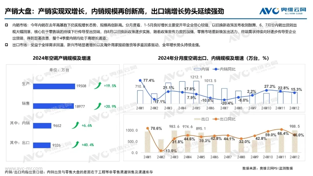 奥维云网公布的数据显示,当下全球约80%的空调产能集中在中国,2024年空调出口销量高达9326万台,同比增长40.4%,需求持续增长。同时,美的、格力等企业也在全力开拓海外市场。