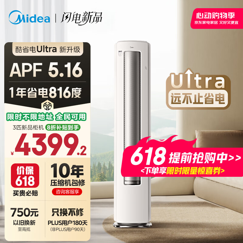 【京东自营】美的空调3匹酷省电Ultra省电神机超一级能效空调立式柜机2025新款国家补贴KFR-7